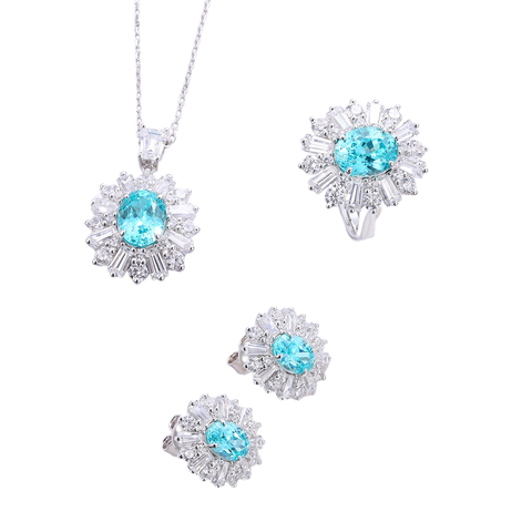 Zhanhao 보석 Paraiba 보석 세트 Paraiba 실험실 성장 925 실버 반지 목걸이 귀걸이 타원형 컷 눈 청소 선물 사용자 정의